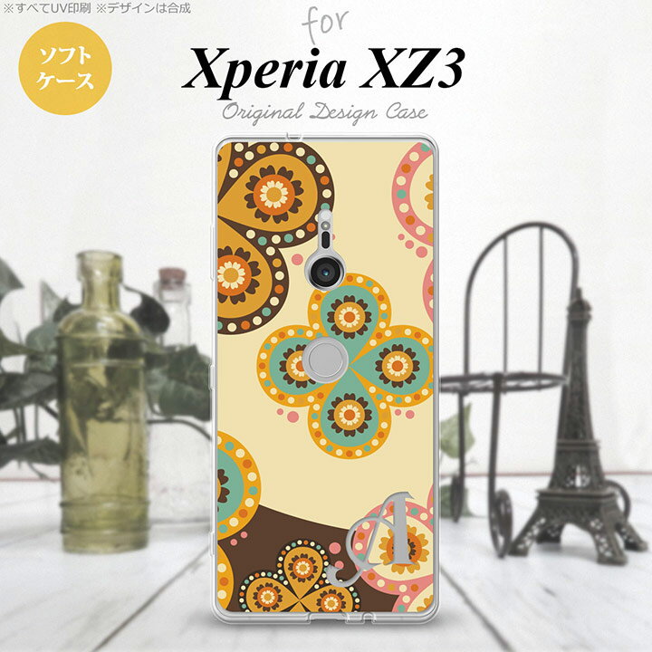 Xperia XZ3 エクスペリア XZ3 SO-01L SOV39 801SO スマホケース カバー ソフトケース エスニック花柄 ベージュ×茶 イニシャル 対応 nk-xz3-tp1583i[スマホ,スマホケース,スマホカバー,ケース,カバー,ジャケット]