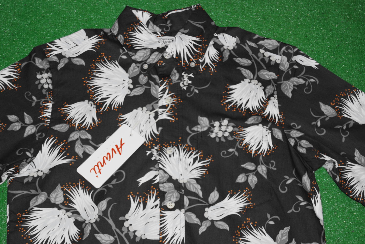 アロハシャツ|AVANTI(アヴァンティ)|AVC025|半袖|メンズ|チャコール|新品|花・フラワー柄(レフア)|ハワイアン|リゾート|プレゼント|コットン100%|ボタンダウン|表地|フルオープン|送料無料