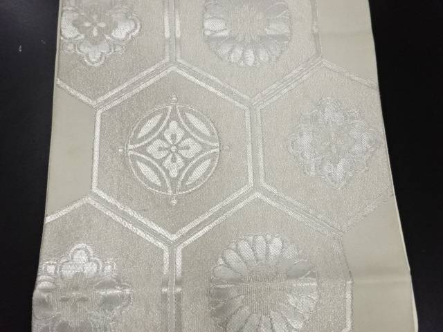 花亀甲模様織り出し袋帯【アンティーク】【中古】(リメイク・材料用)